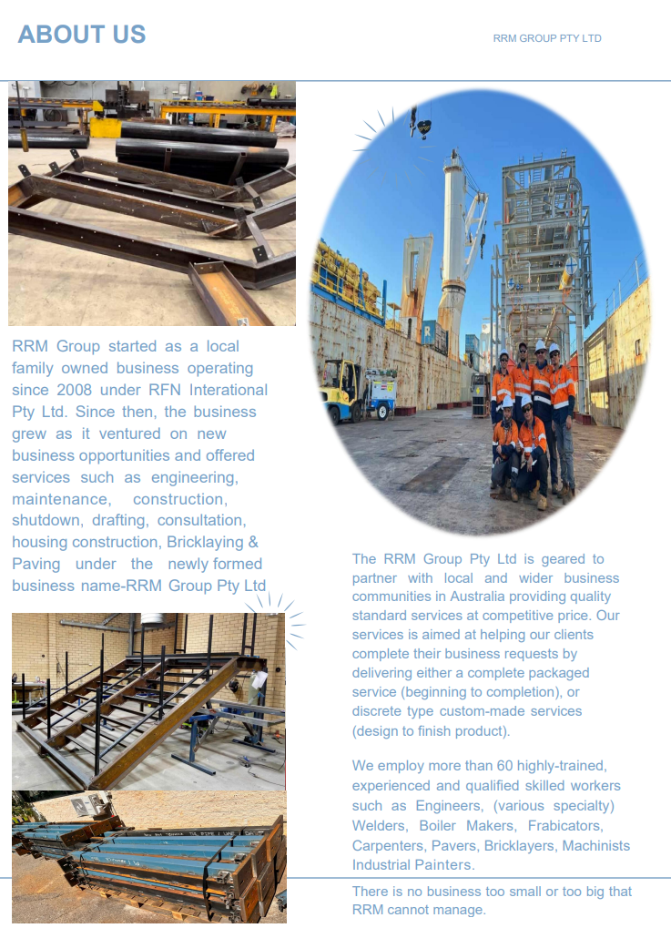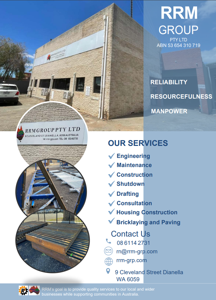 RRM GROUP PTY LTD is a multi-disciplinary engineering contractor to the oil and gas, civil and Industrial engineering projects. We provide engineering and construction services such as: